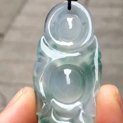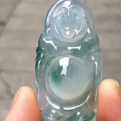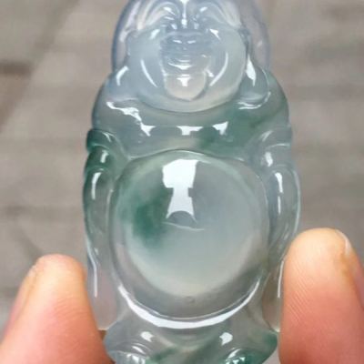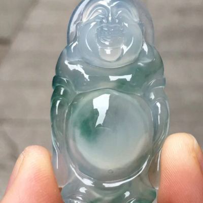 老坑料高冰种飘花弥勒佛 佛翡翠吊坠