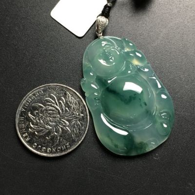 冰飘花布袋佛 佛翡翠吊坠 白金扣 尺寸42-28-7毫米