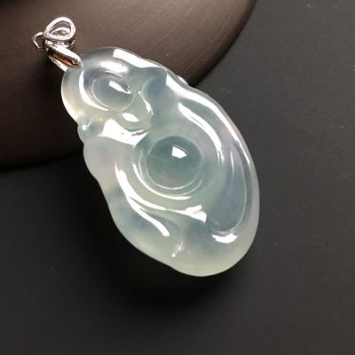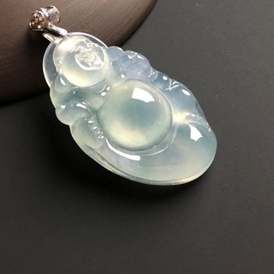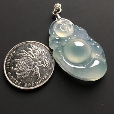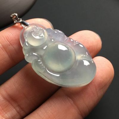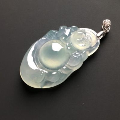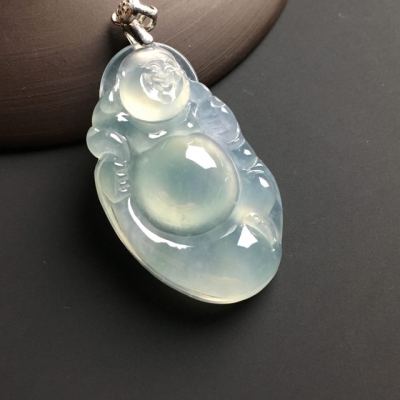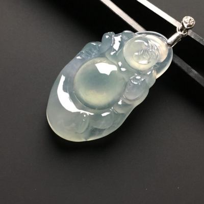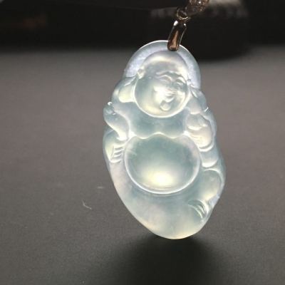 冰晴布袋佛 佛翡翠吊坠 白金扣 尺寸37-22-9毫米