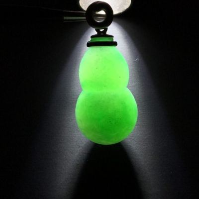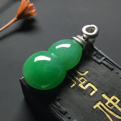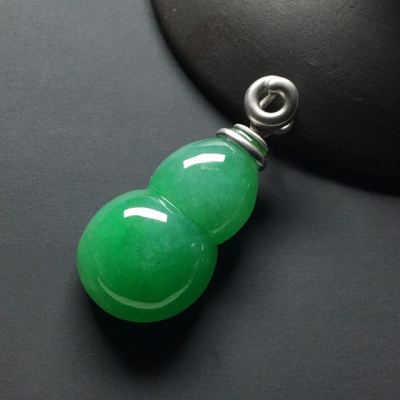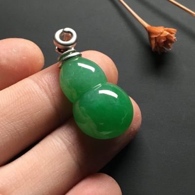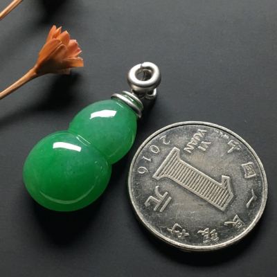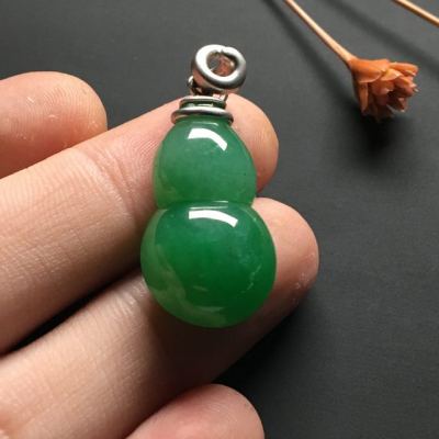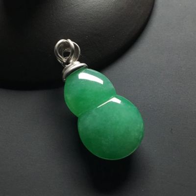 冰种满绿 葫芦翡翠吊坠 18k金扣 尺寸:26.5-15-8.2毫米