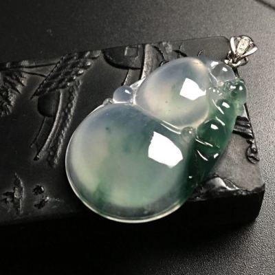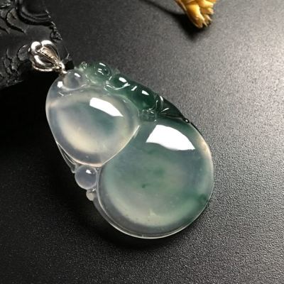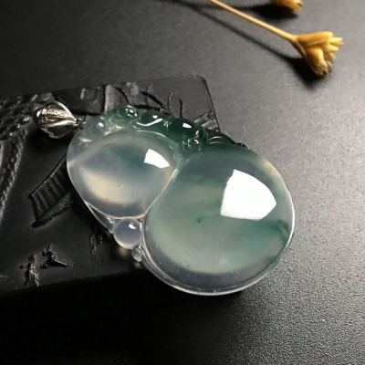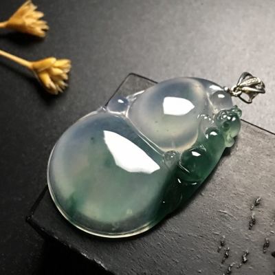冰种飘花 葫芦翡翠吊坠 尺寸38-25-7.5毫米