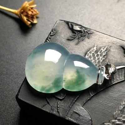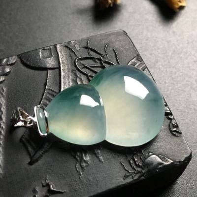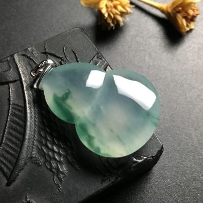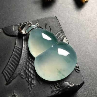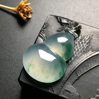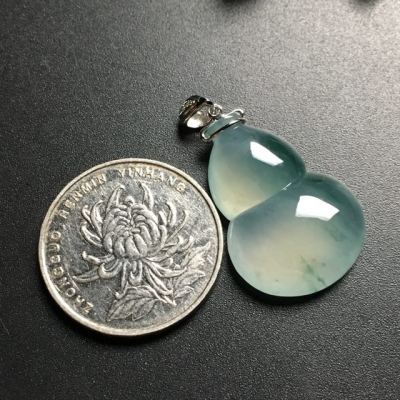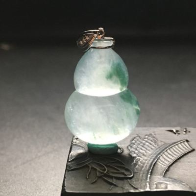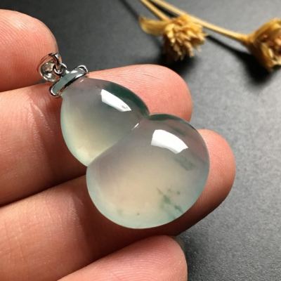 冰种飘花 葫芦翡翠吊坠 福禄 白金扣 尺寸27-20-7毫米