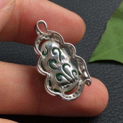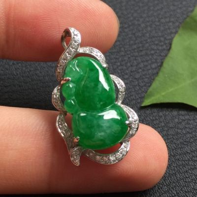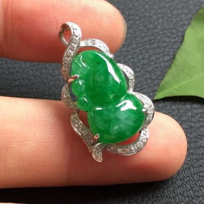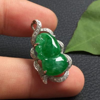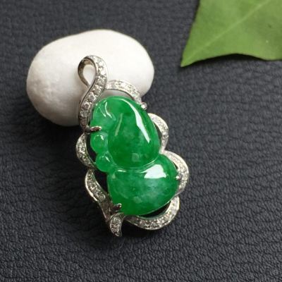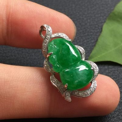 豆种满绿 葫芦翡翠吊坠18k金豪华镶嵌