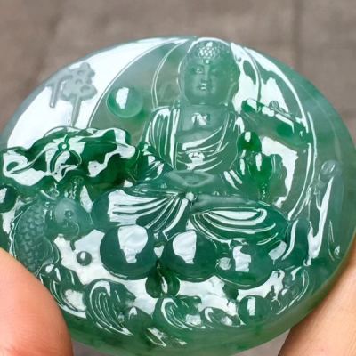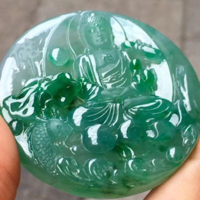 老坑料冰种满绿《如来佛祖》 佛翡翠吊坠