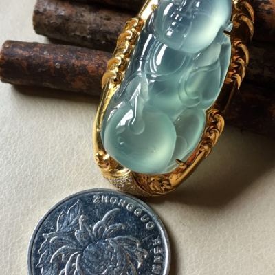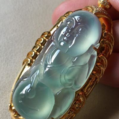 玻璃种晴水沙弥 佛翡翠吊坠 尺寸37*17.6*8.整体58*24.3*12.5