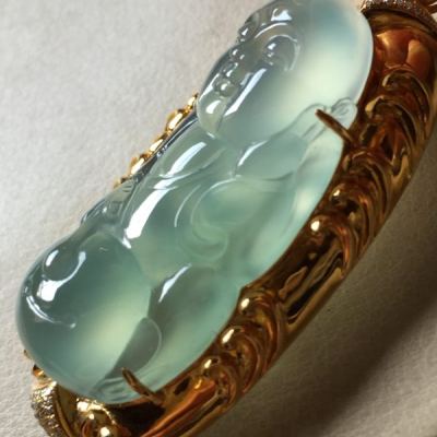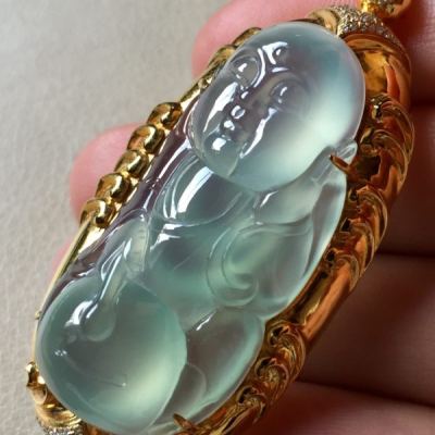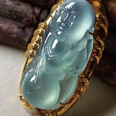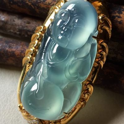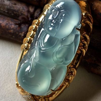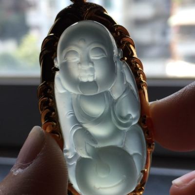 冰种翡翠或是玻璃种翡翠玉佛,它们属于中、
