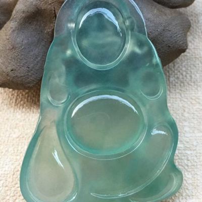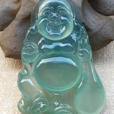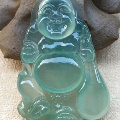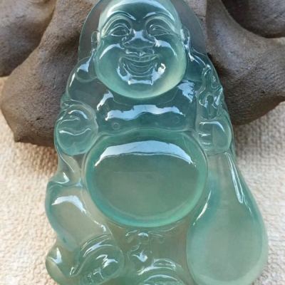 老坑料高冰种晴水底色《布袋佛》 佛翡翠吊坠