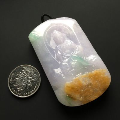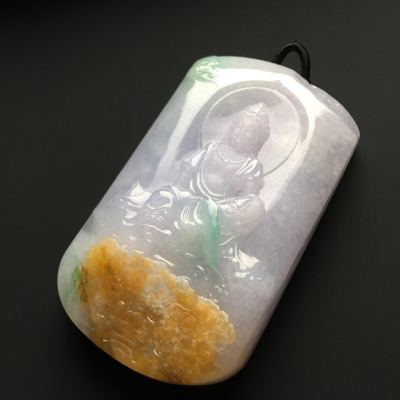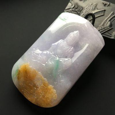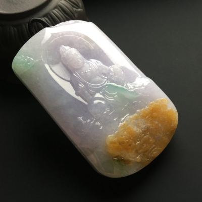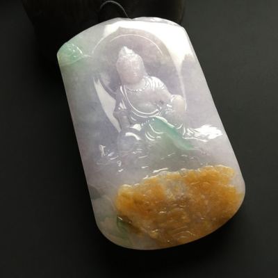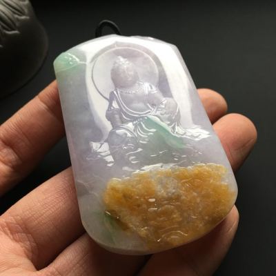 糯种三彩文殊菩萨翡翠吊坠 尺寸69-42-15毫米