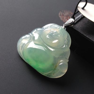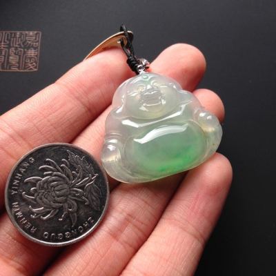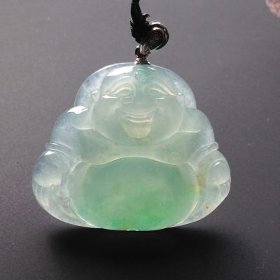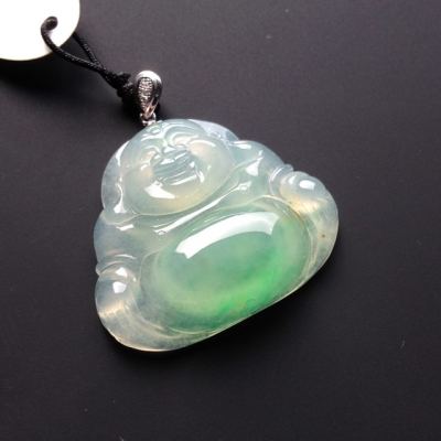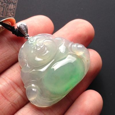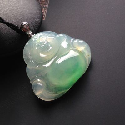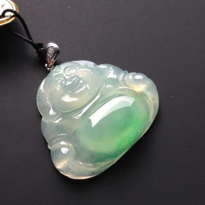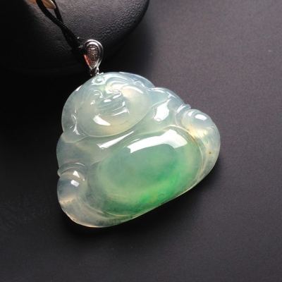 冰种飘翠佛公翡翠吊坠 18K白金扣 裸石28-33-6毫米