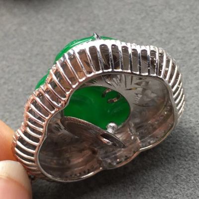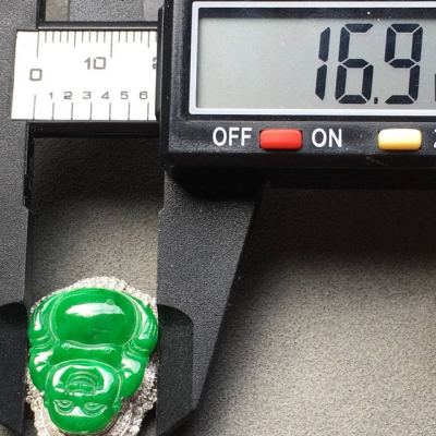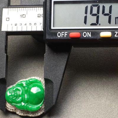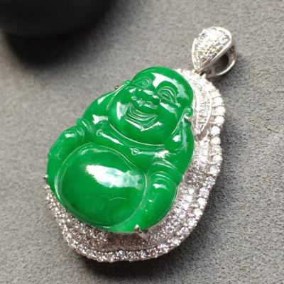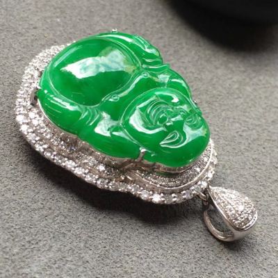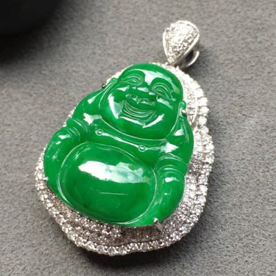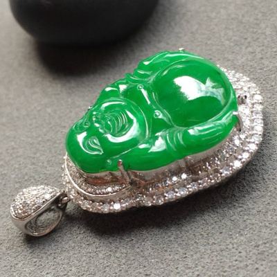 冰种满绿佛公翡翠吊坠 18k白金奢华钻石镶嵌豪华镶嵌 大小:19.4*16.9*4mm