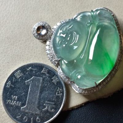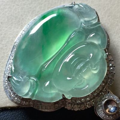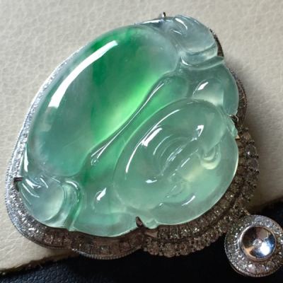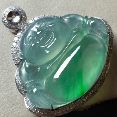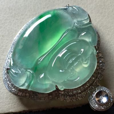 高冰飘阳绿佛公翡翠吊坠 尺寸25.5*31.8*6整体36.6*35.5*12.5