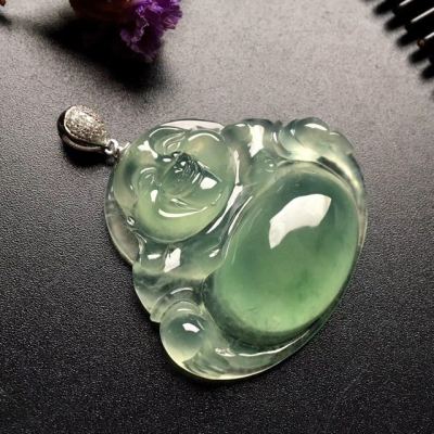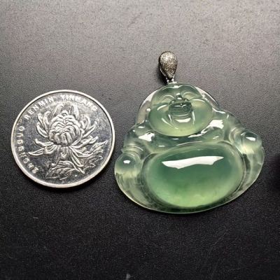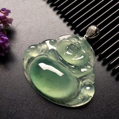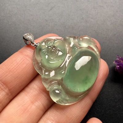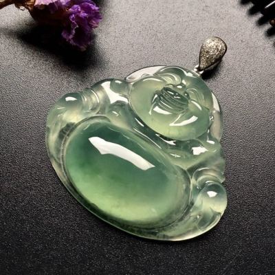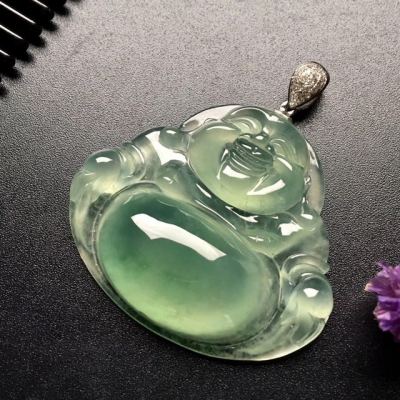 冰种晴水笑佛翡翠吊坠 尺寸: 37-33-8mm