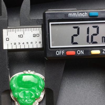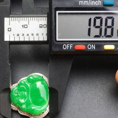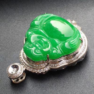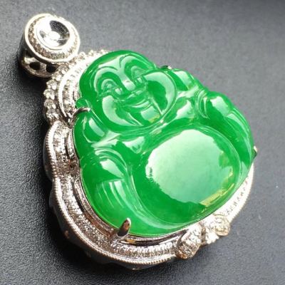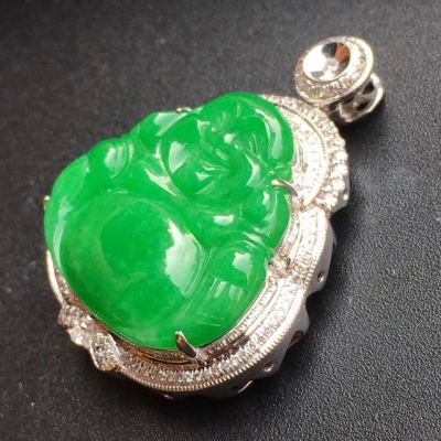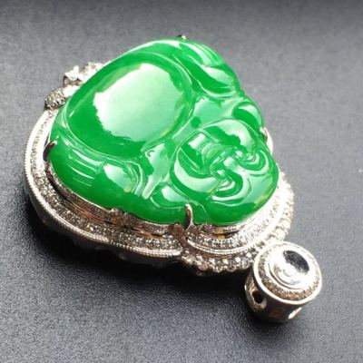 冰种满绿 18k白金镶嵌 佛公翡翠吊坠寓意佳 大小:19.8*21.2*3mm