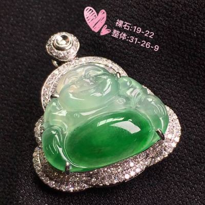 冰糯种飘绿 佛公翡翠吊坠 尺寸:31*26*9 裸石尺寸:22*19