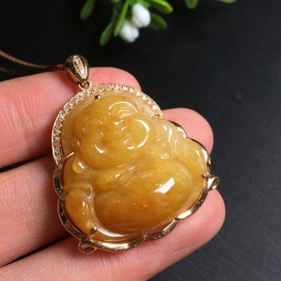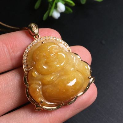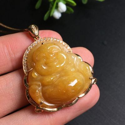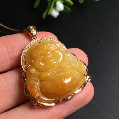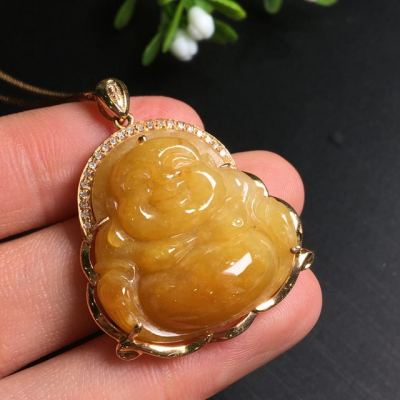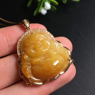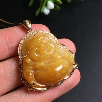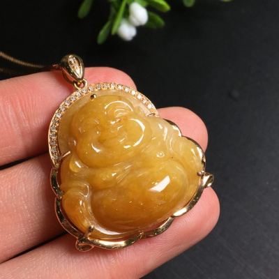 糯种黄翡吊坠 尺寸35.6*28.2*9.0mm
