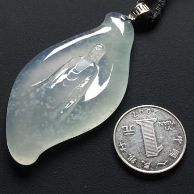 冰种晴水翡翠吊坠 尺寸:70-37-7.7毫米
