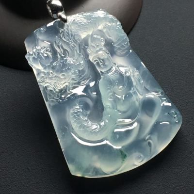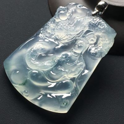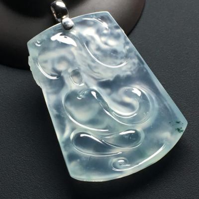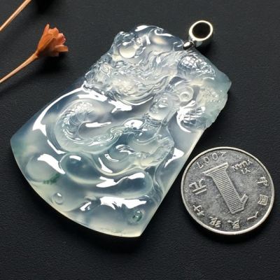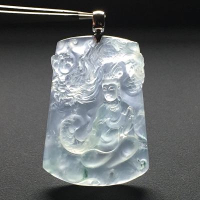 冰种飘花观音翡翠吊坠 尺寸:61-44-7毫米