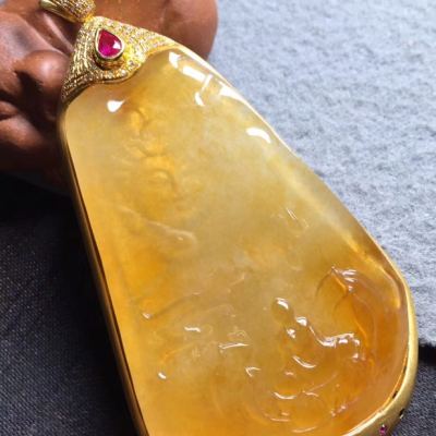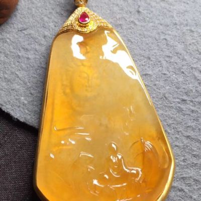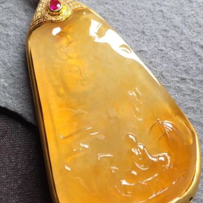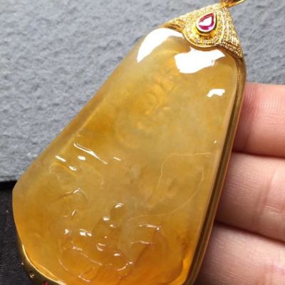 冰种黄翡吊坠 尺寸53*34*5