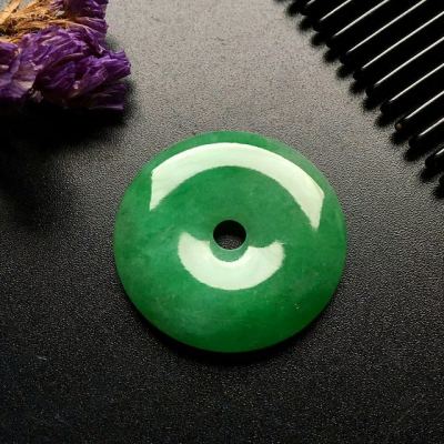 冰种满绿翡翠吊坠 翡翠平安扣吊坠 尺寸: 29-5mm