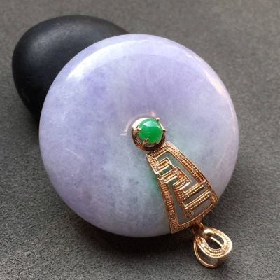 冰种紫罗兰翡翠吊坠 翡翠平安扣吊坠 裸石大小:33.2*9.5mm