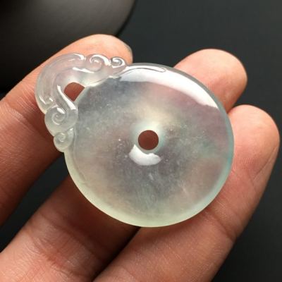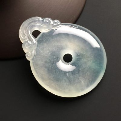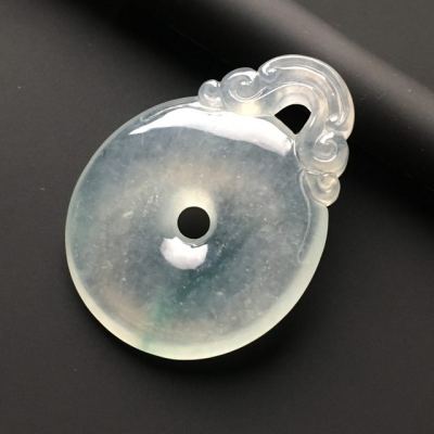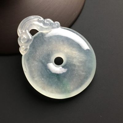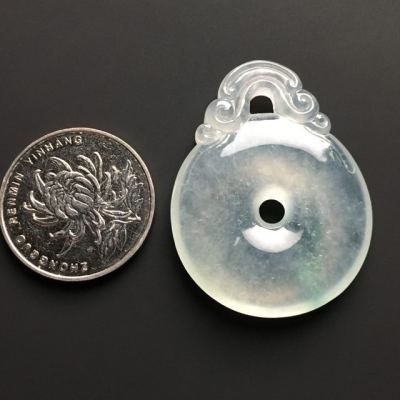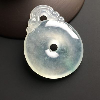 冰种晴水翡翠吊坠 翡翠平安扣吊坠 尺寸41-32-6毫米