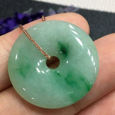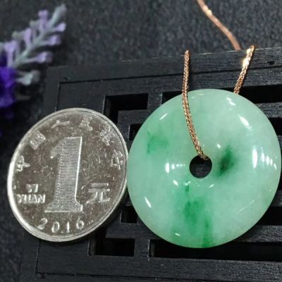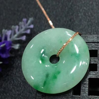 冰种飘绿翡翠平安扣吊坠 色阳水润饱满完美