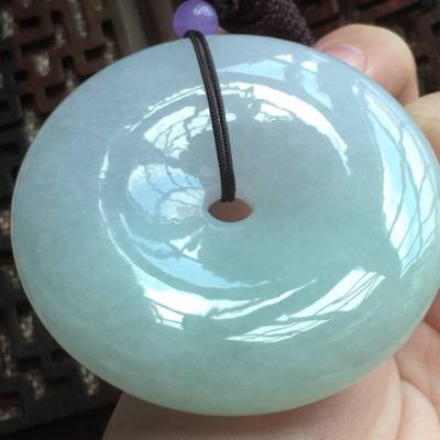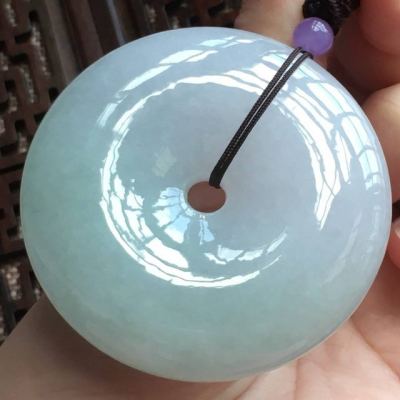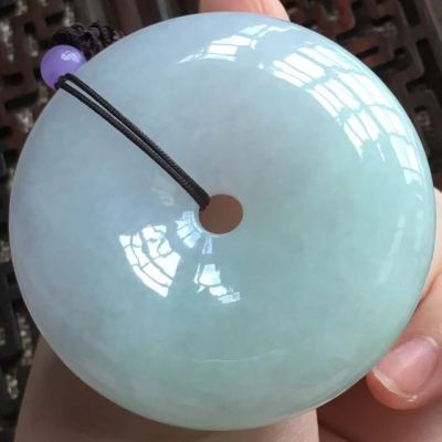 冰糯种晴水翡翠平安扣吊坠 尺寸53.8*12