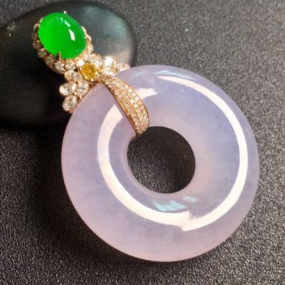 冰种紫罗兰翡翠平安扣吊坠 裸石尺寸:10*939*39