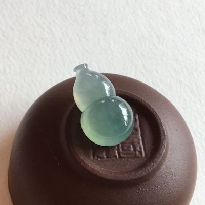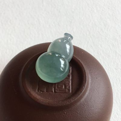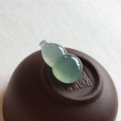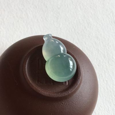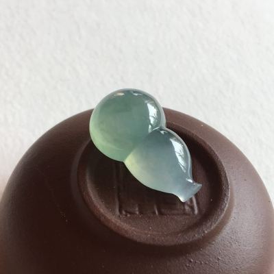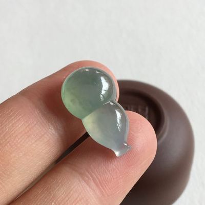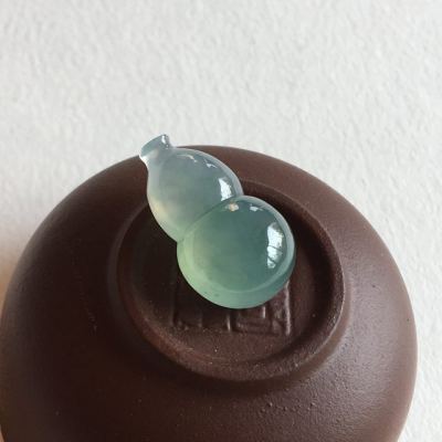 冰种蓝水翡翠葫芦吊坠 完美无纹裂 尺寸 21.3x12.8x8 毫米