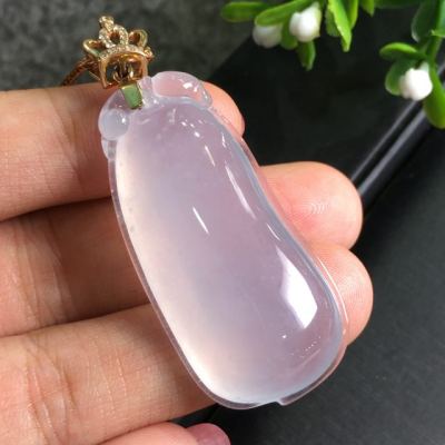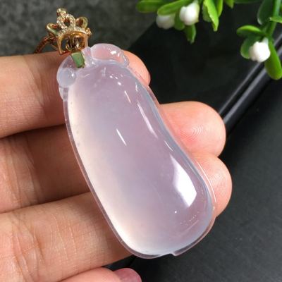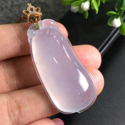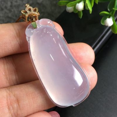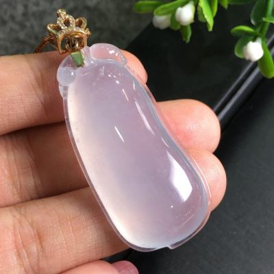 冰种紫罗兰翡翠福瓜吊坠 尺寸42.0*20.5*10.5mm