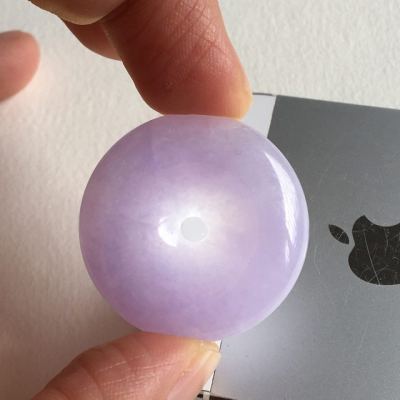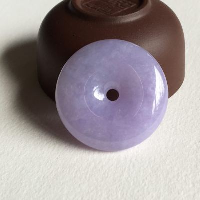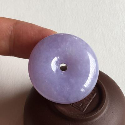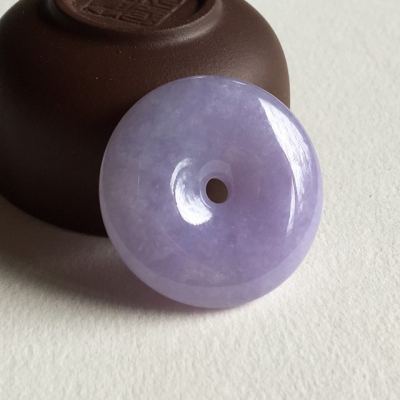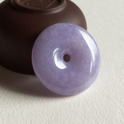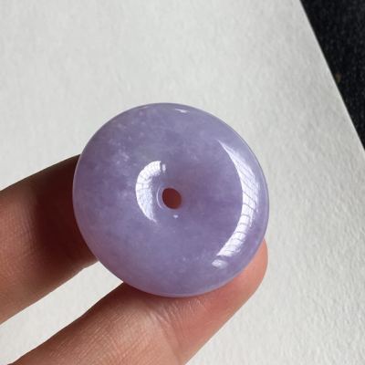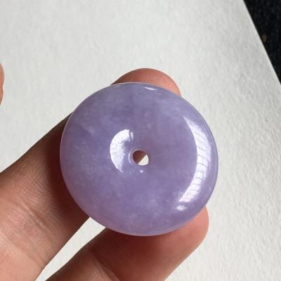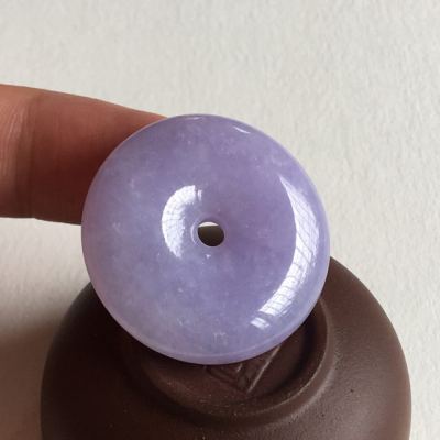 冰种紫罗兰翡翠平安扣吊坠 尺寸 31.5x7.2 毫米