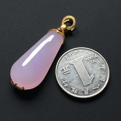 冰种紫罗兰翡翠福瓜吊坠 尺寸:44.6-15-9