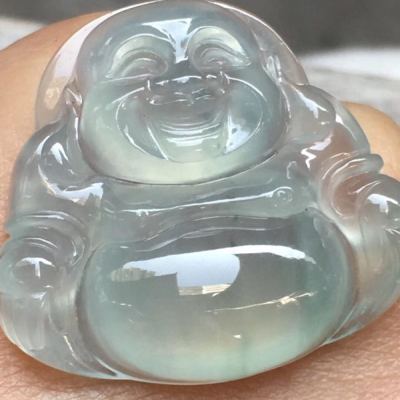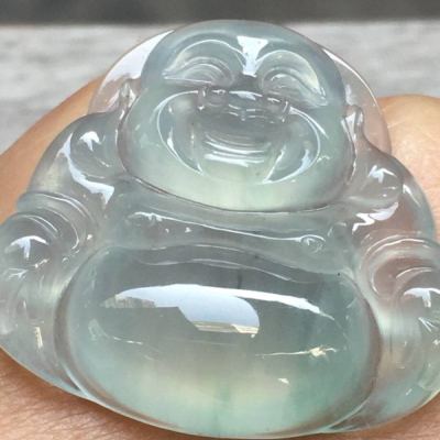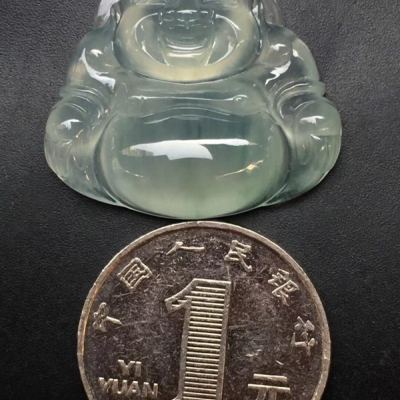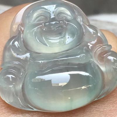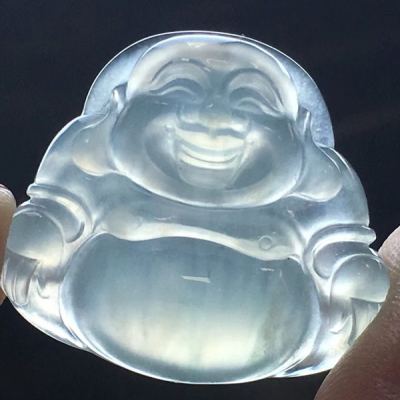 冰种晴水坐佛翡翠吊坠 尺寸:26.1*29*7mm 完美无裂纹