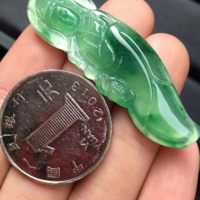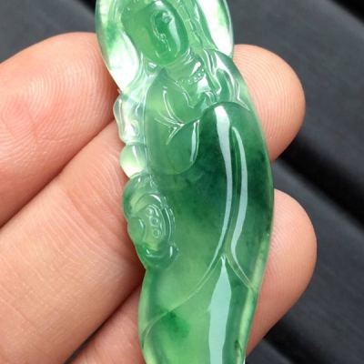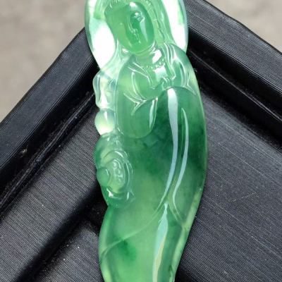 冰糯种阳绿随形翡翠观音吊坠 尺寸48*14.6*41206