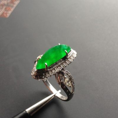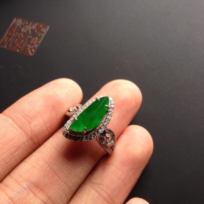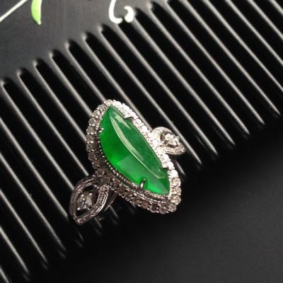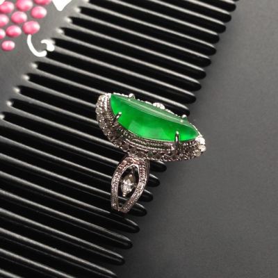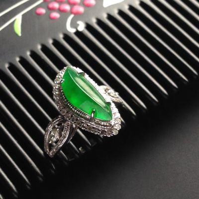 13-6-3.5寸冰种满色 缅甸天然翡翠戒指