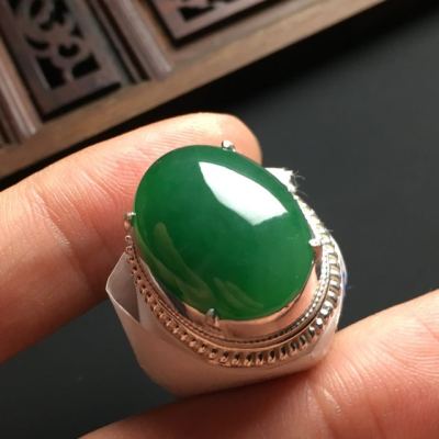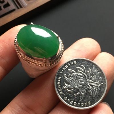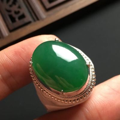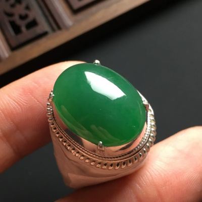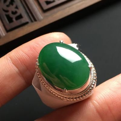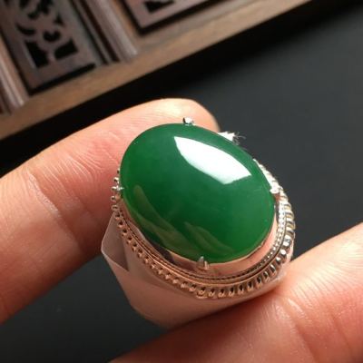 翡翠戒面近乎完美的外观吸引了很多消费