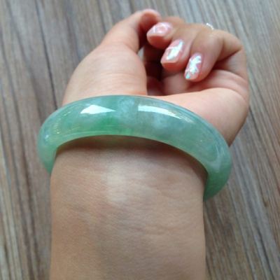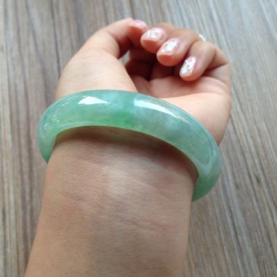 冰润绿底翡翠平安镯:54.7-46.6-13-7