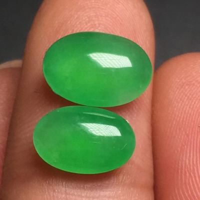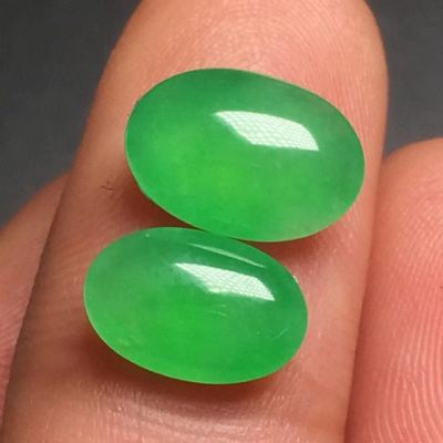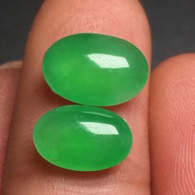 冰糯种甜绿蛋面一对10.1*7.2*3.3mm9.2*6.2*3.2mm