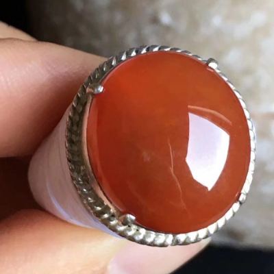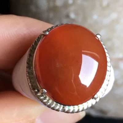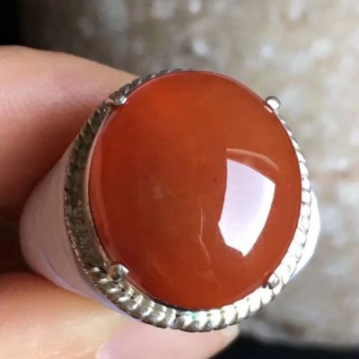 老坑冰种 红翡 缅甸天然翡翠戒指17.7-16-6.4mm