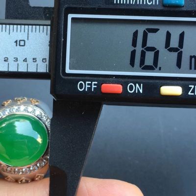 冰种阳绿 缅甸天然翡翠戒指大小15*16.4*7mm
