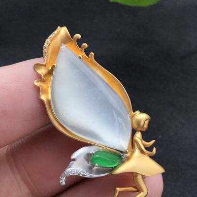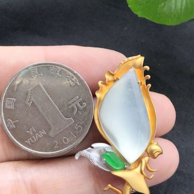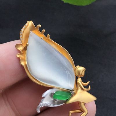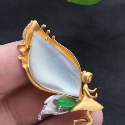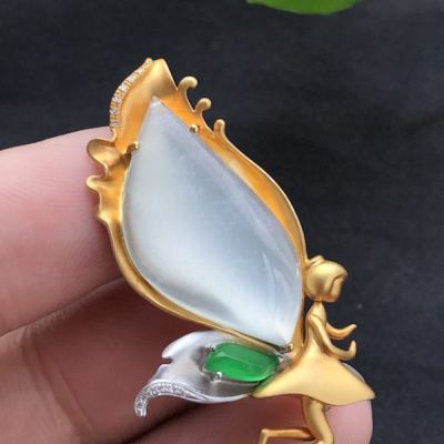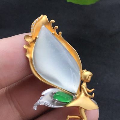 翡翠胸针分为两种,一种是雕花的翡翠用金属