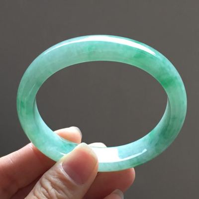 圆型扁条的翡翠手镯因为条子已经压扁,在保
