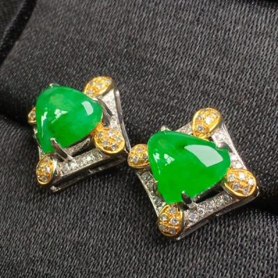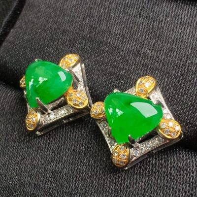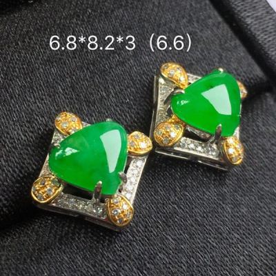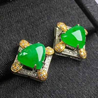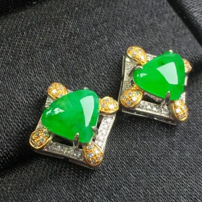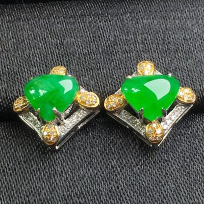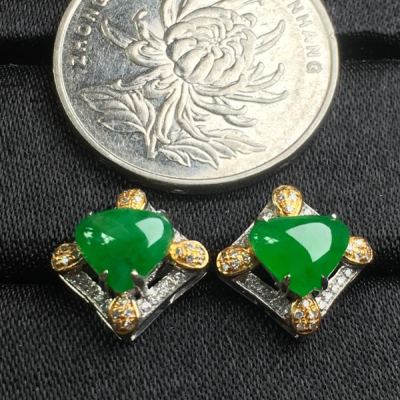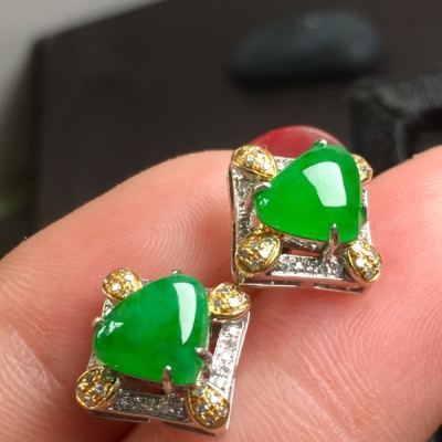冰种满绿心 翡翠耳钉 色泽鲜艳