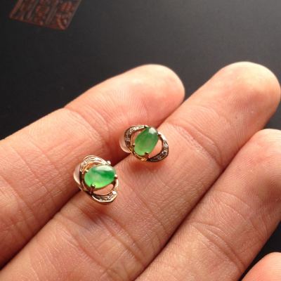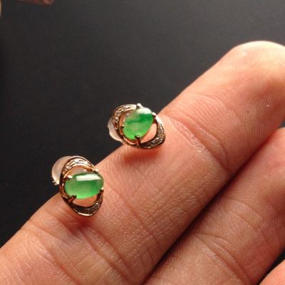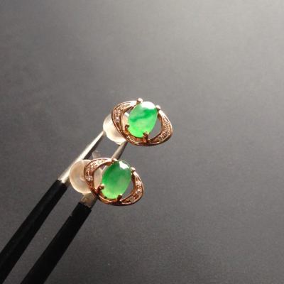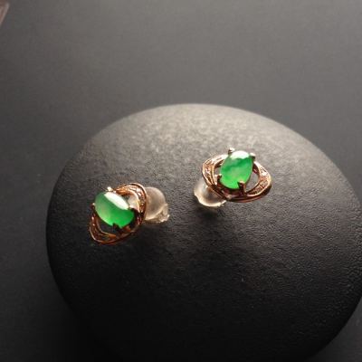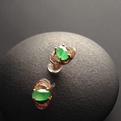 冰种绿底 翡翠耳钉 6-3-2毫米