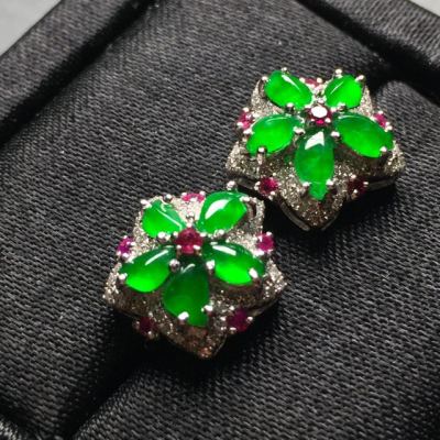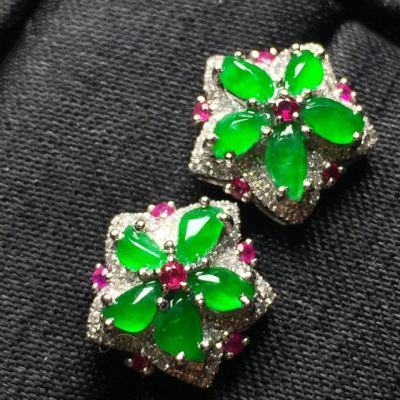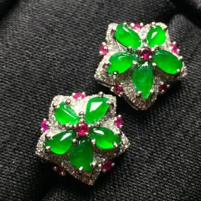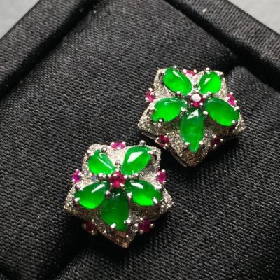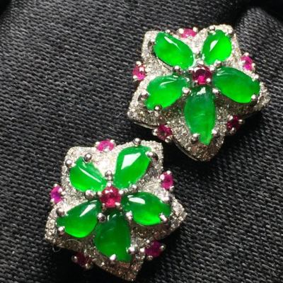 冰阳绿 翡翠耳钉 整体尺寸12.5*12.5*6.3