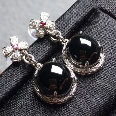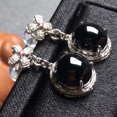 冰种墨翠 翡翠耳坠 8.4*8*5