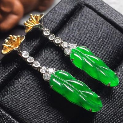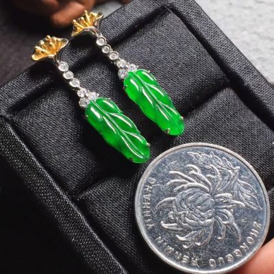 冰阳绿 翡翠耳坠 15.4*6.3*3整体31.5*6.3*4.2