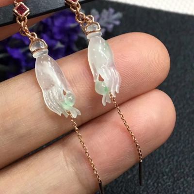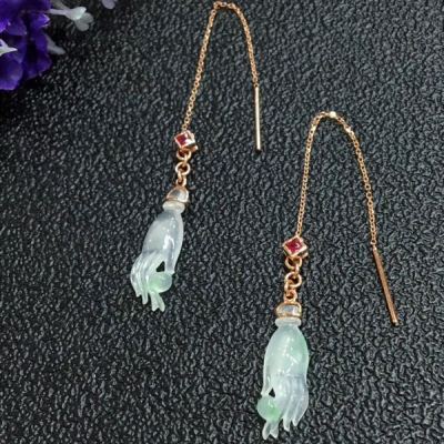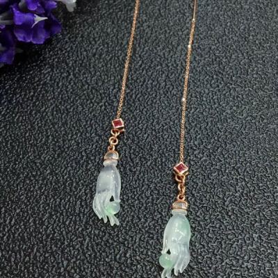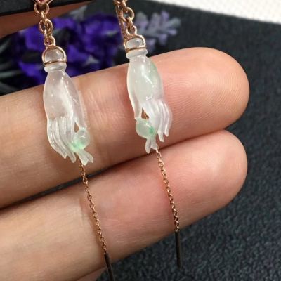 冰糯种飘绿 翡翠耳坠98.9*6.0*2.8mm
