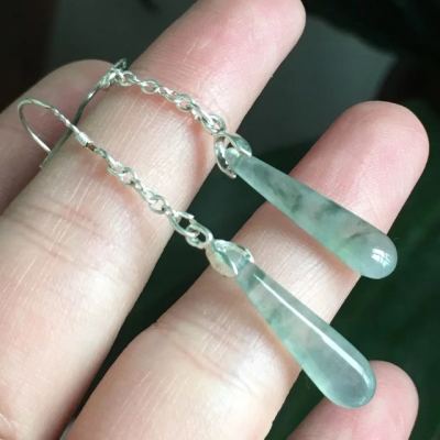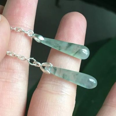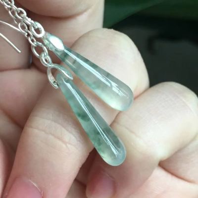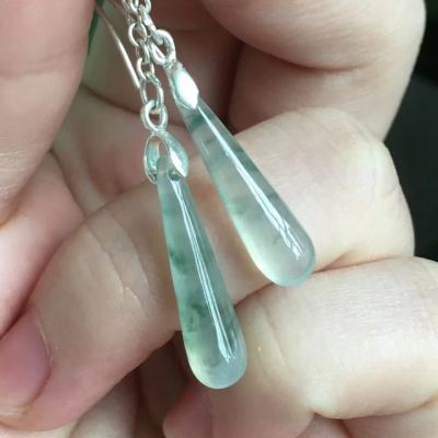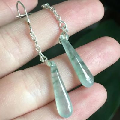 冰种飘花水滴 翡翠耳坠22.4*5.4