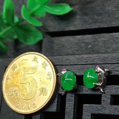 冰满绿 翡翠耳钉7.4*6.7*4.6mm
